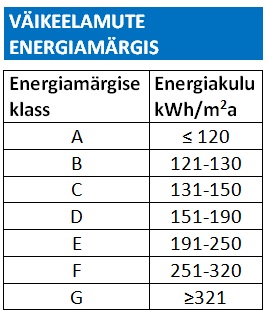 Kehtivate nõuete järgi ei tohi Eestis ehitatavate hoonete energiatõhususarv ei tohi ületada väikeelamutes (sh paarismajad ja ridaelamud) 180 kWh aastas ruutmeetri kohta ehk siis minimaalselt D klassi.